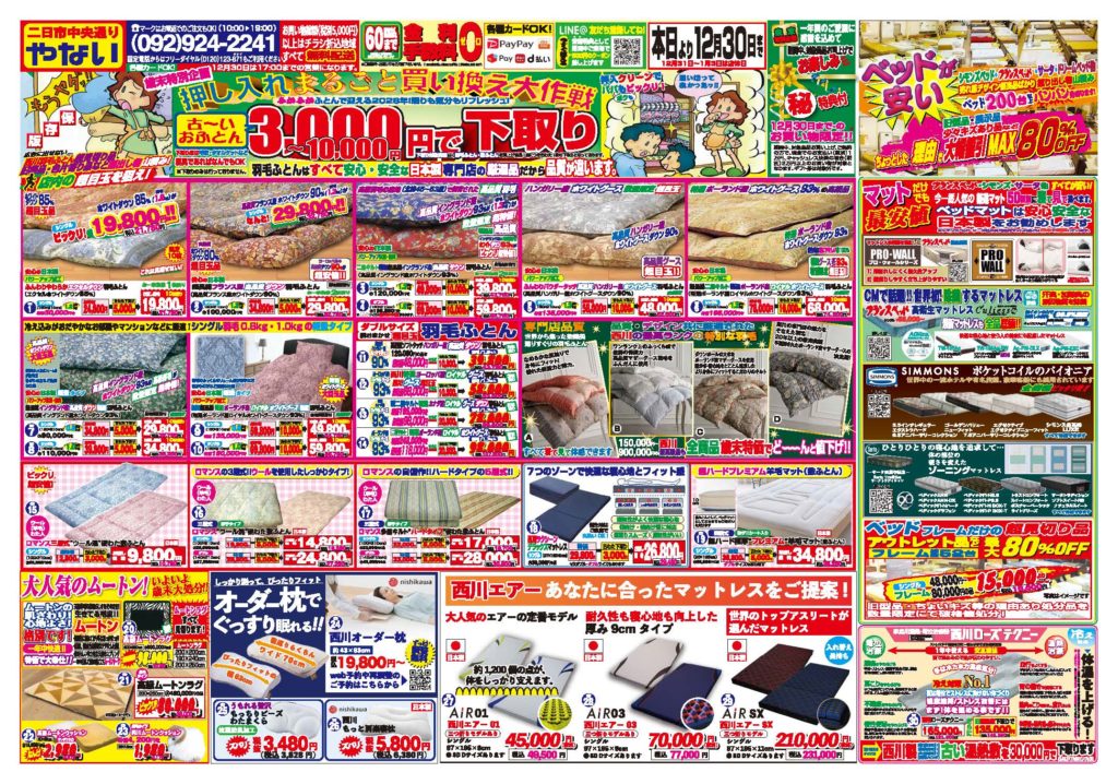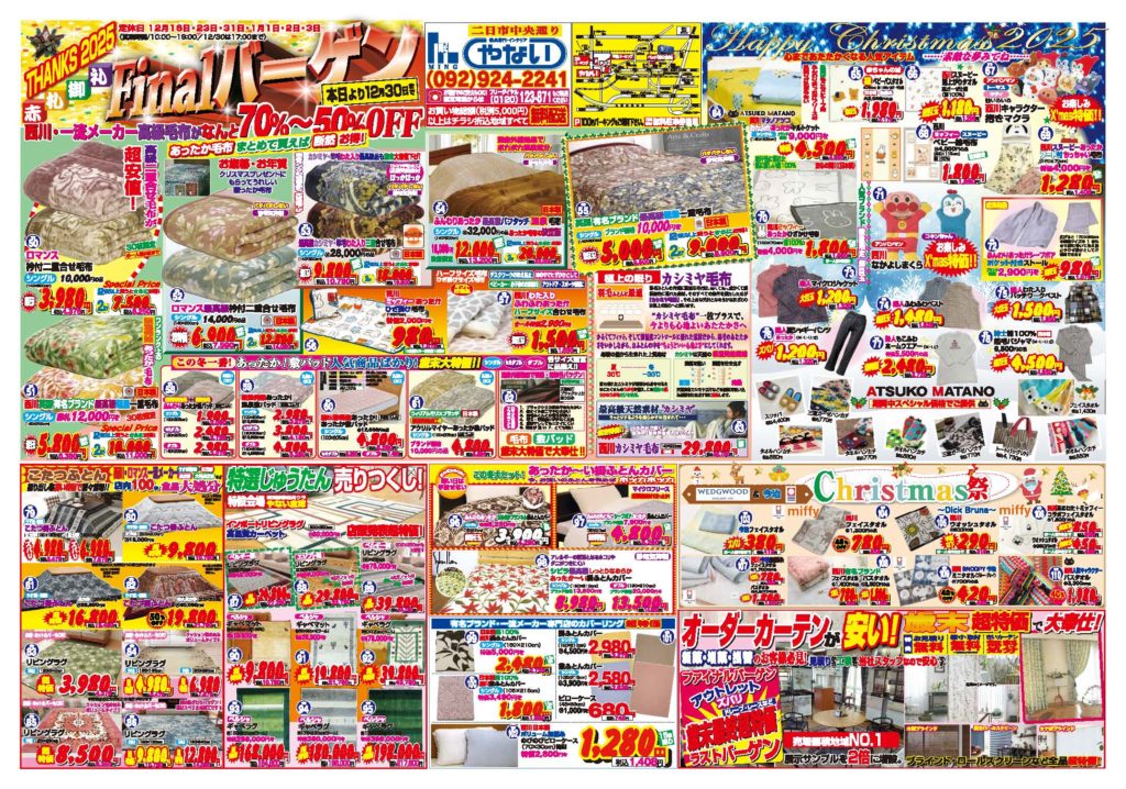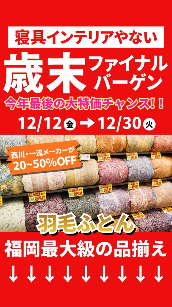 福岡・二日市の「寝具インテリアやない」では、今年最後の 歳末ファイナルバーゲン2025 を開催します!